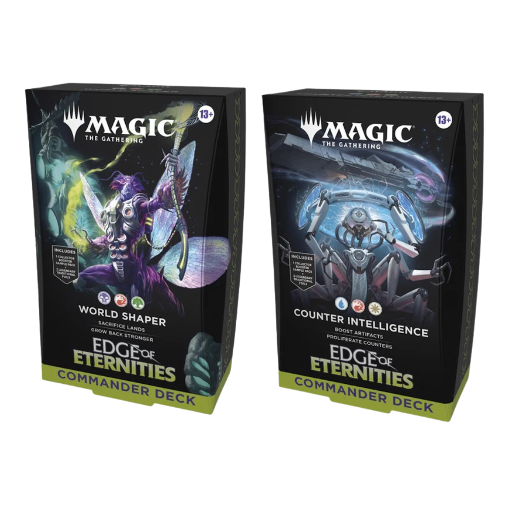 Commander decks are ready to play right out of the box, and contain everything you need to play Magic’s most popular multiplayer format. Edge of Eternities offers two different versions of the Commander deck.